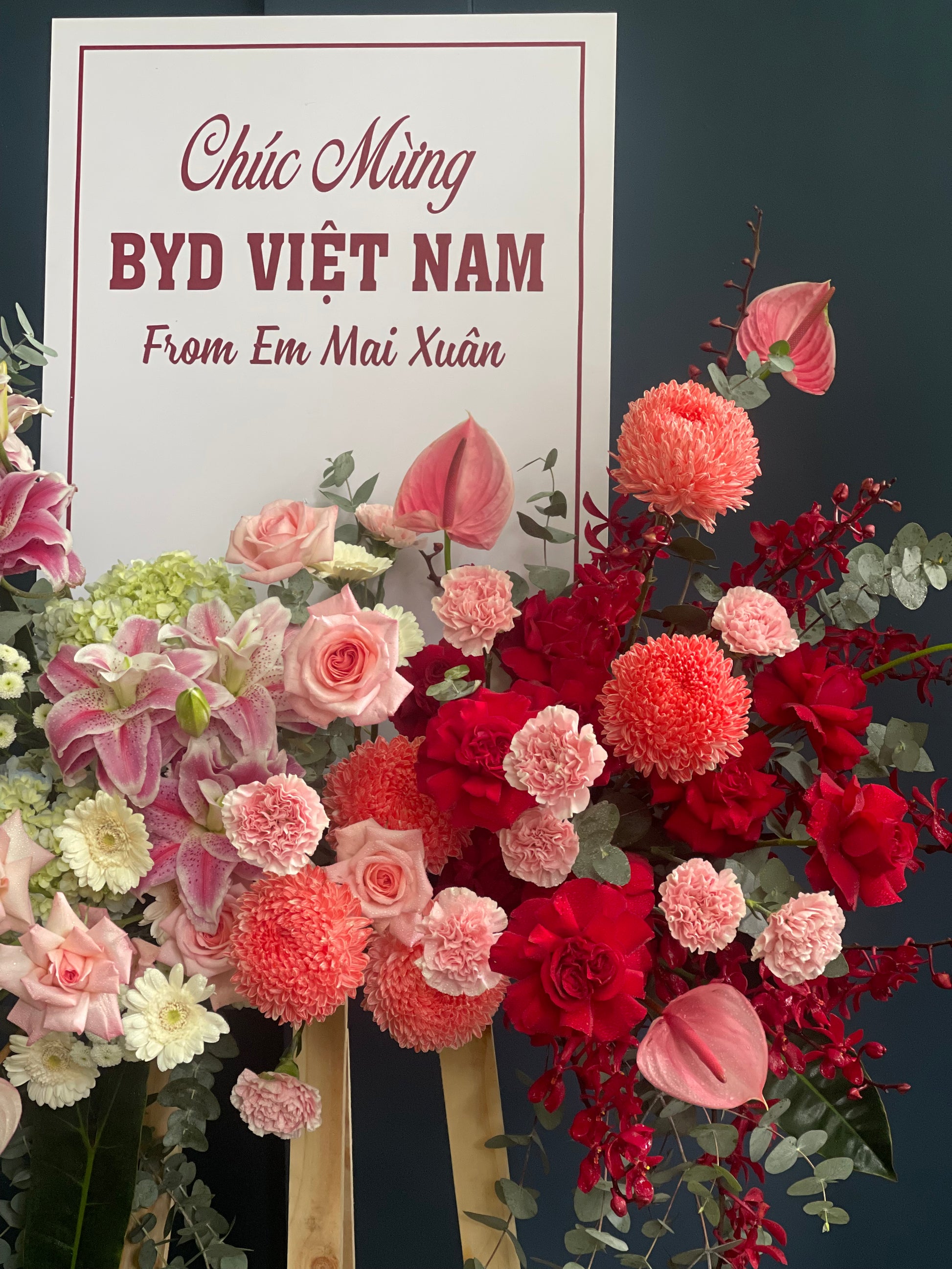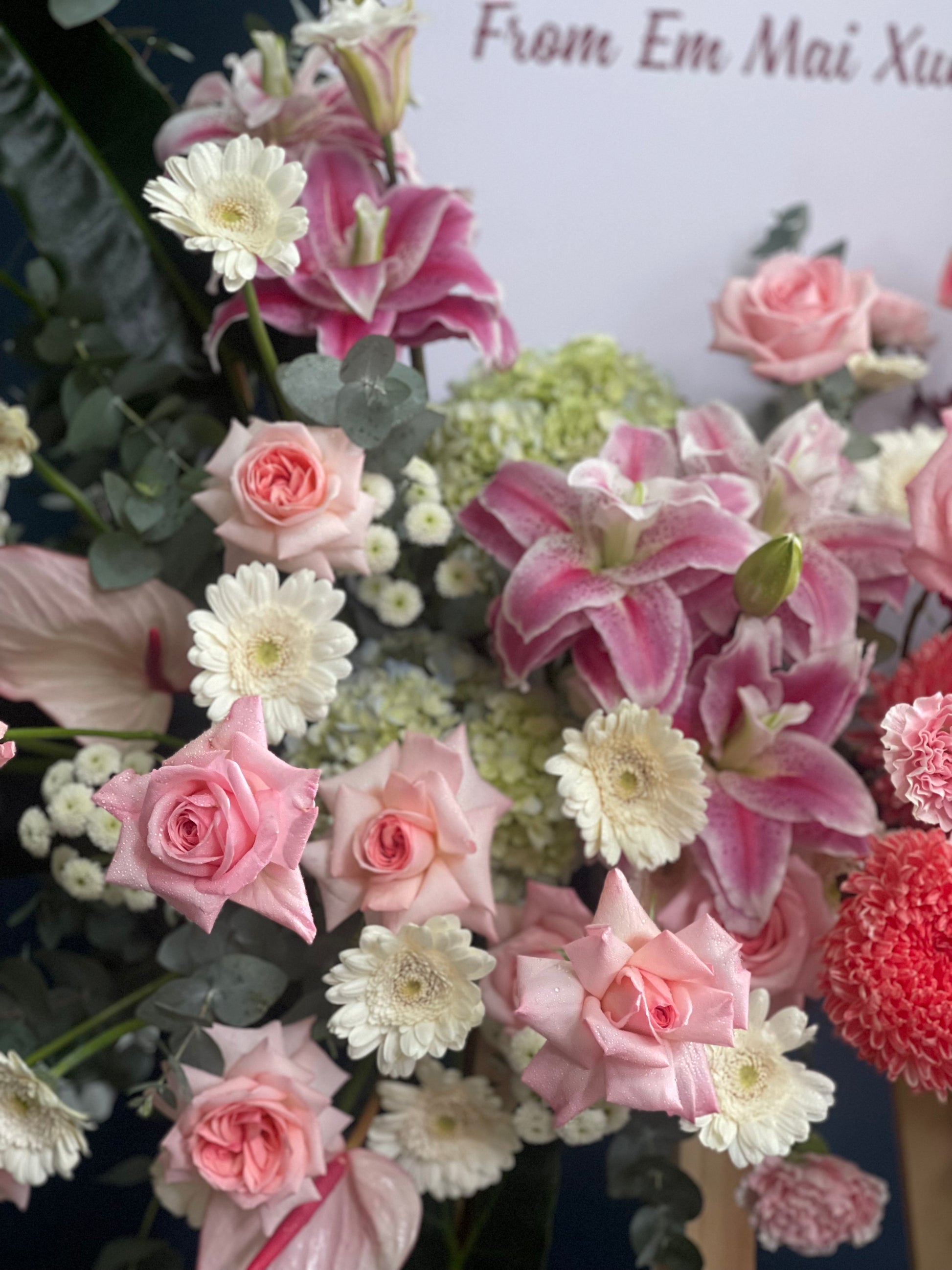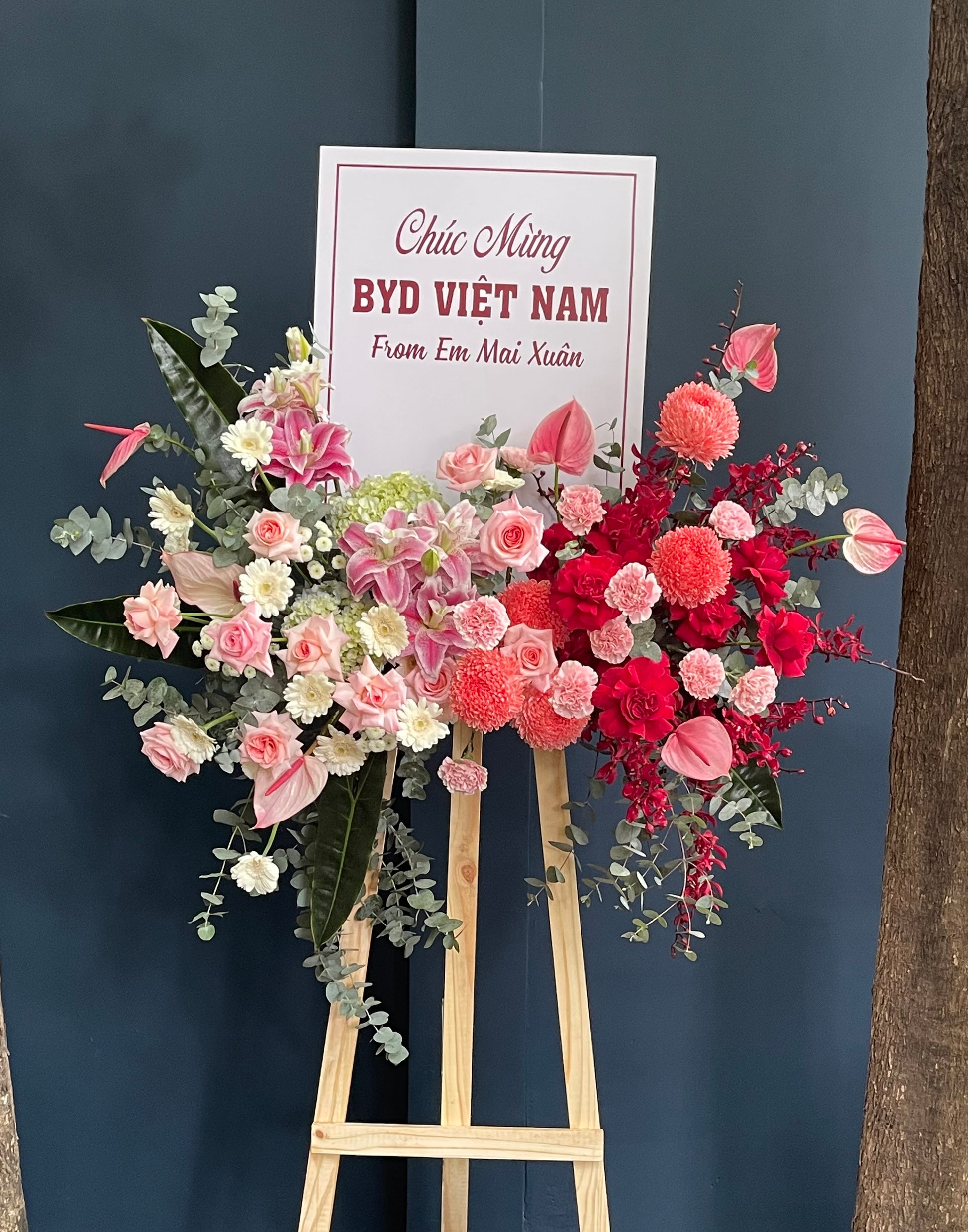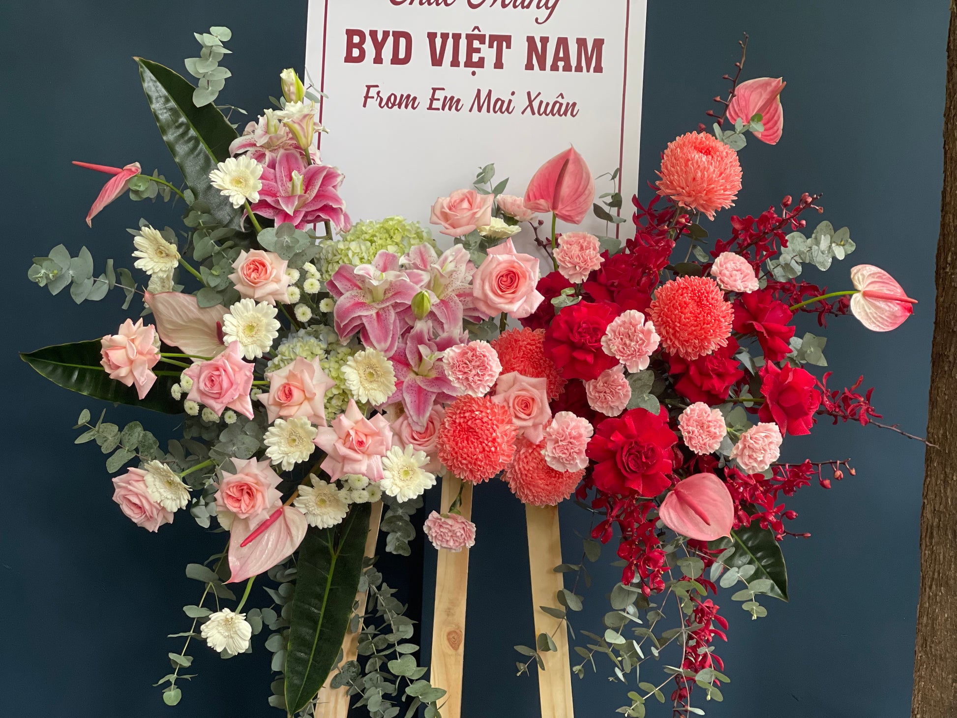 💐 Kệ hoa mang sắc thái hiện đại và rực rỡ, như lời chúc mừng tràn đầy năng lượng gửi đến những khởi đầu mới.