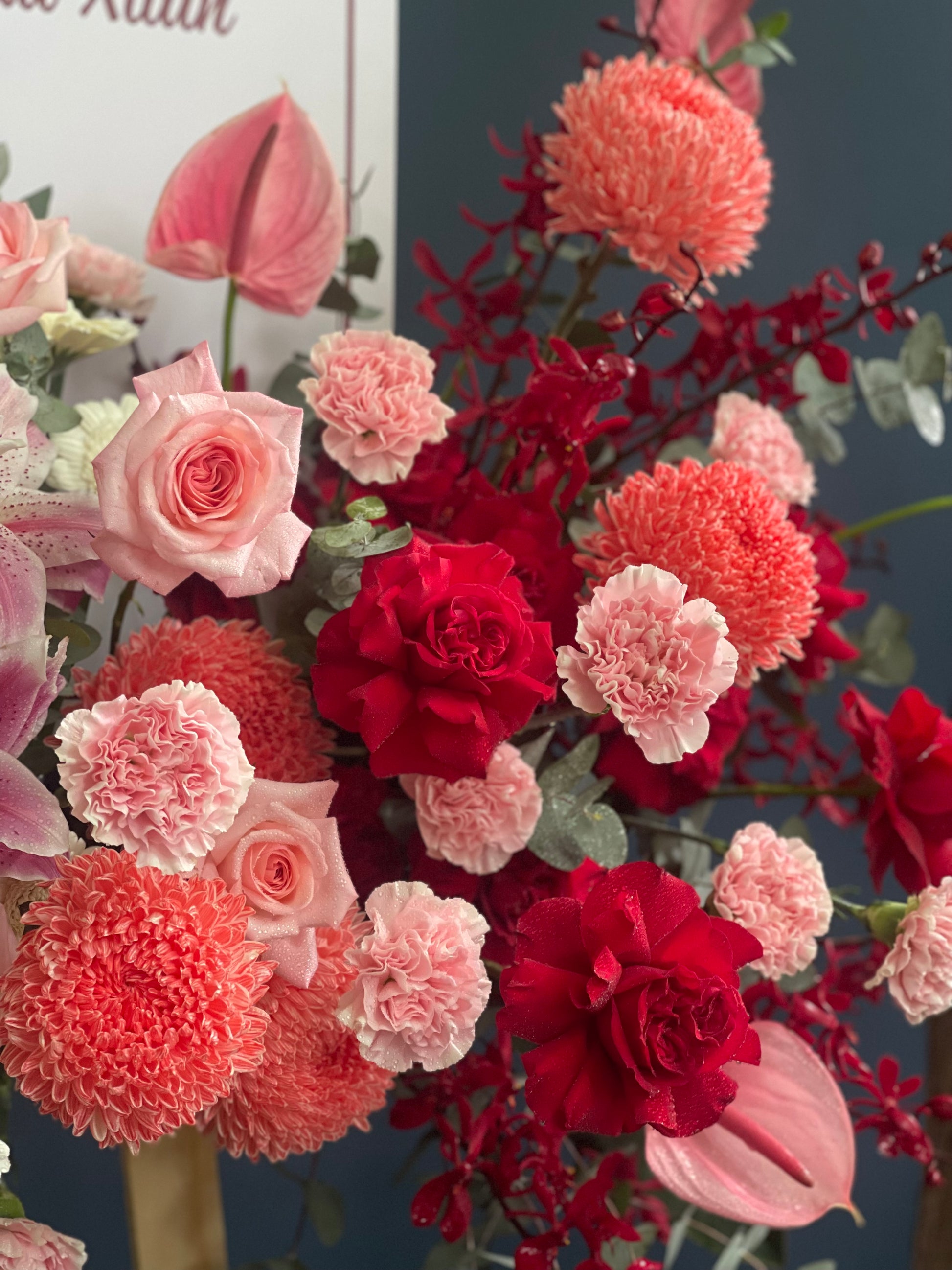 💐 A floral stand with a modern, vibrant spirit — like an energetic congratulatory message for new beginnings.