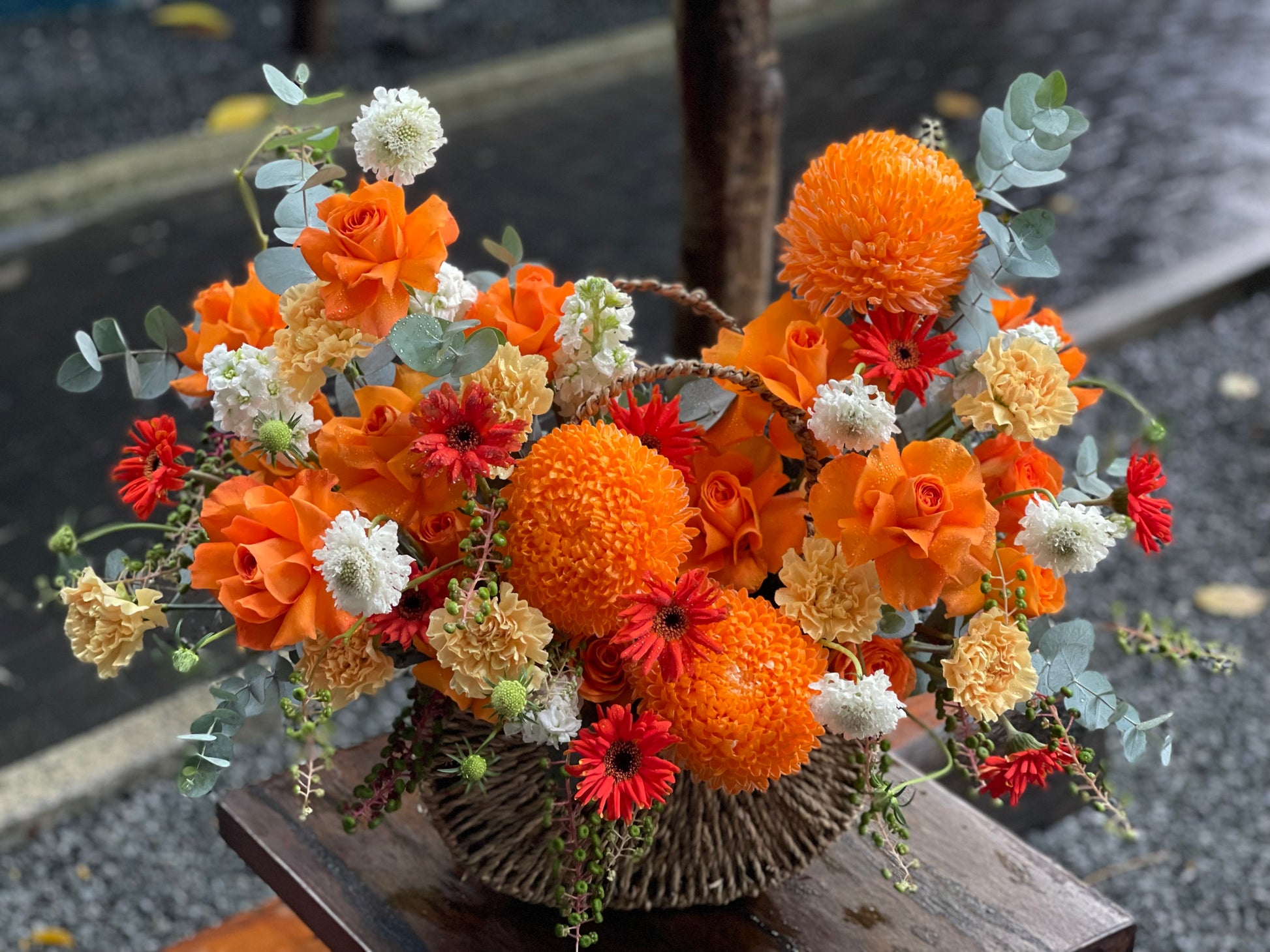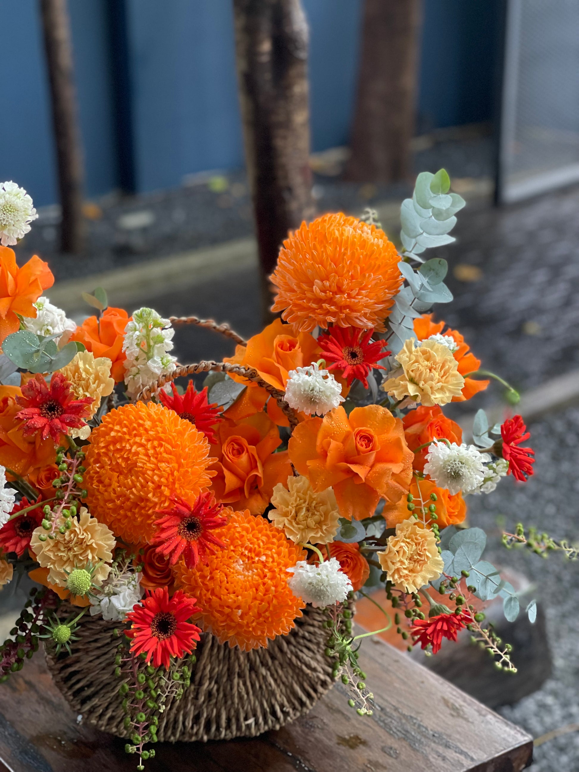 🍁 Bringing the breath of autumn into a floral basket — vibrant, yet filled with warmth.