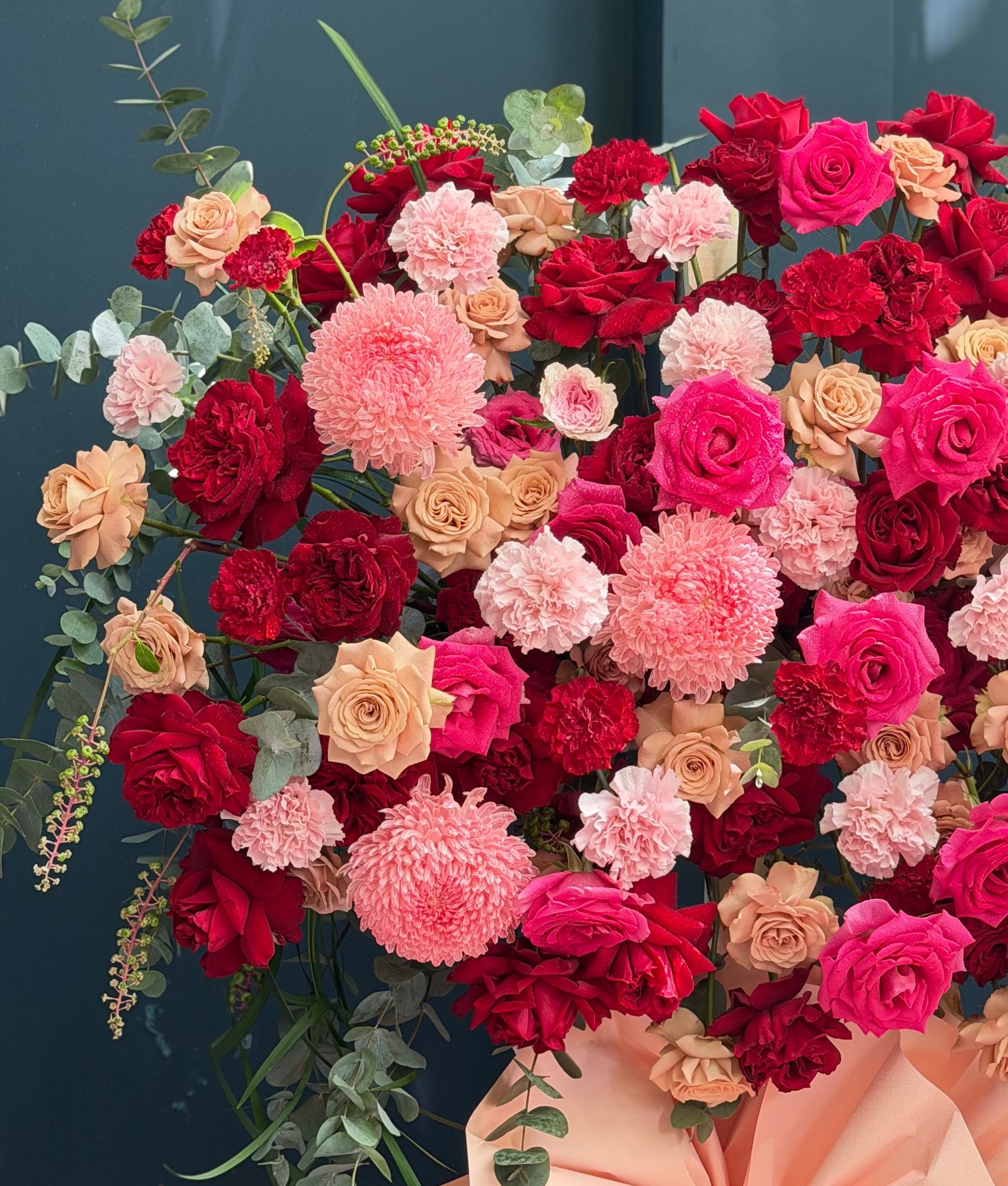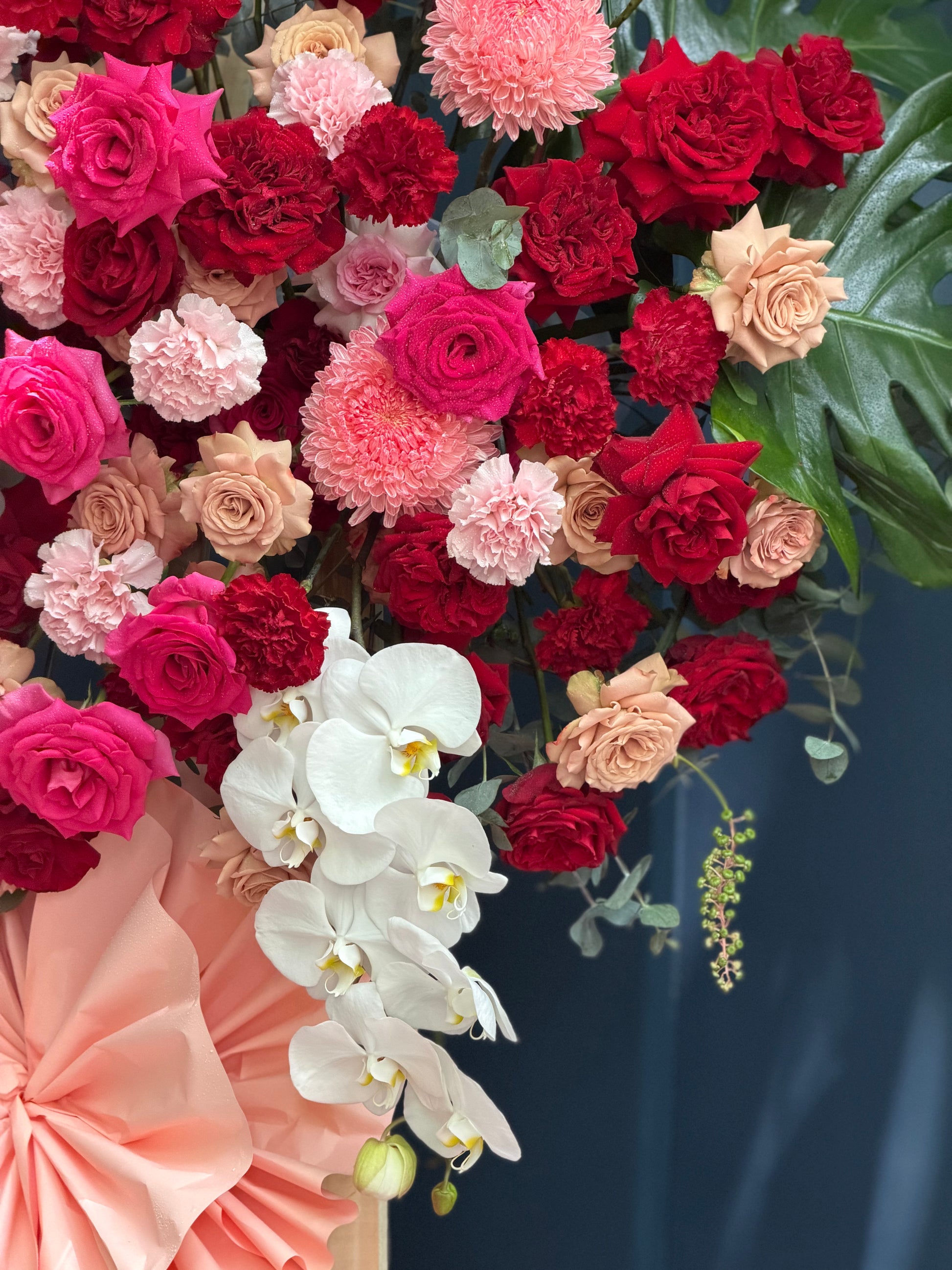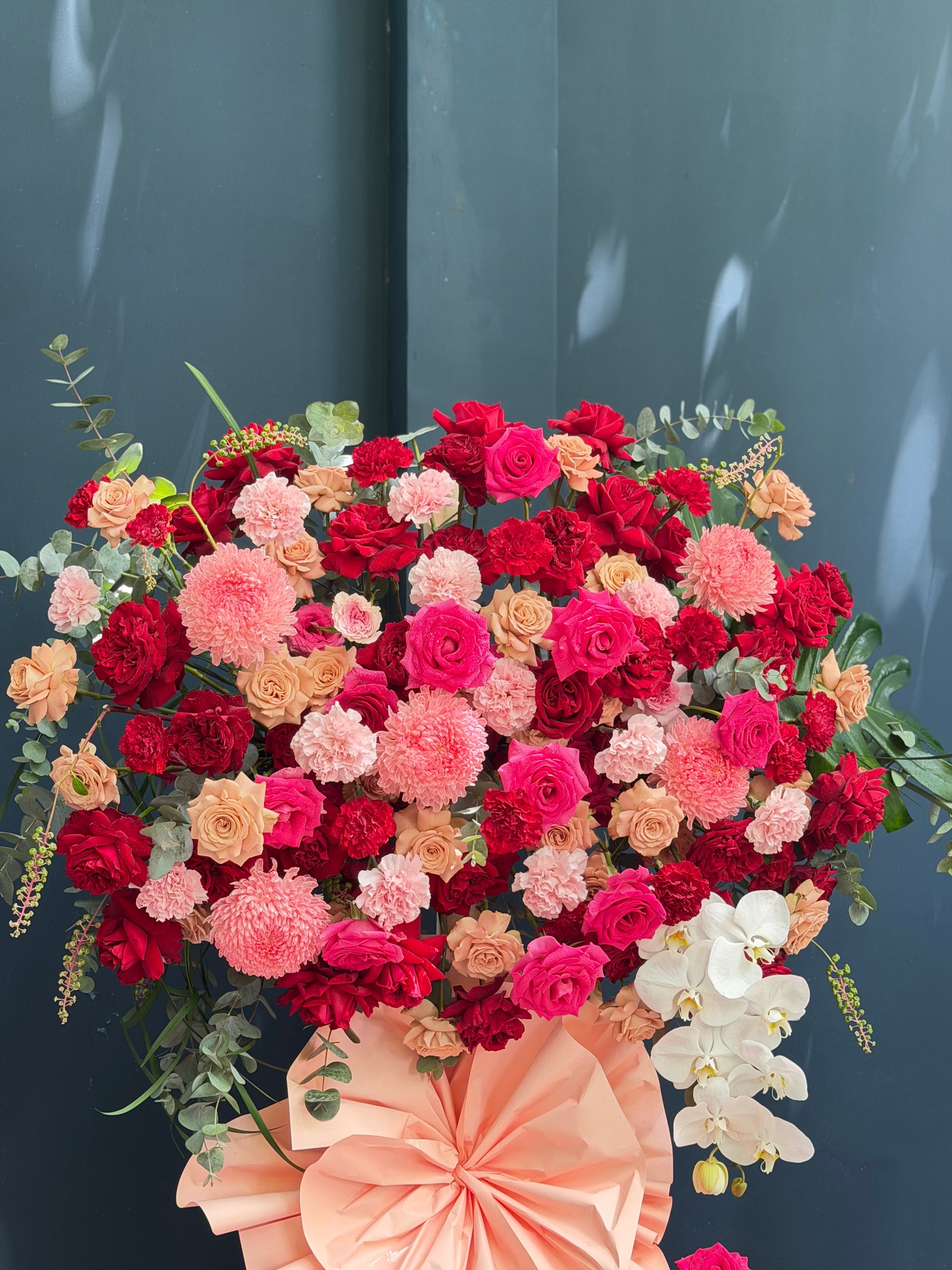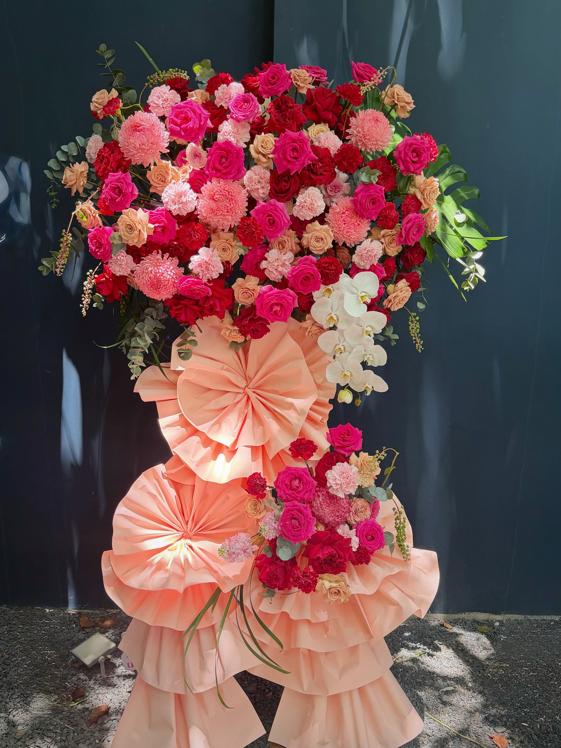 Each layer of blooms flows into the next like the rhythm of a new day — strong, fresh, and full of energy. A congratulatory message expressed through radiant shades of pink, red, and purple, opening the door to a journey filled with promise and flourish.